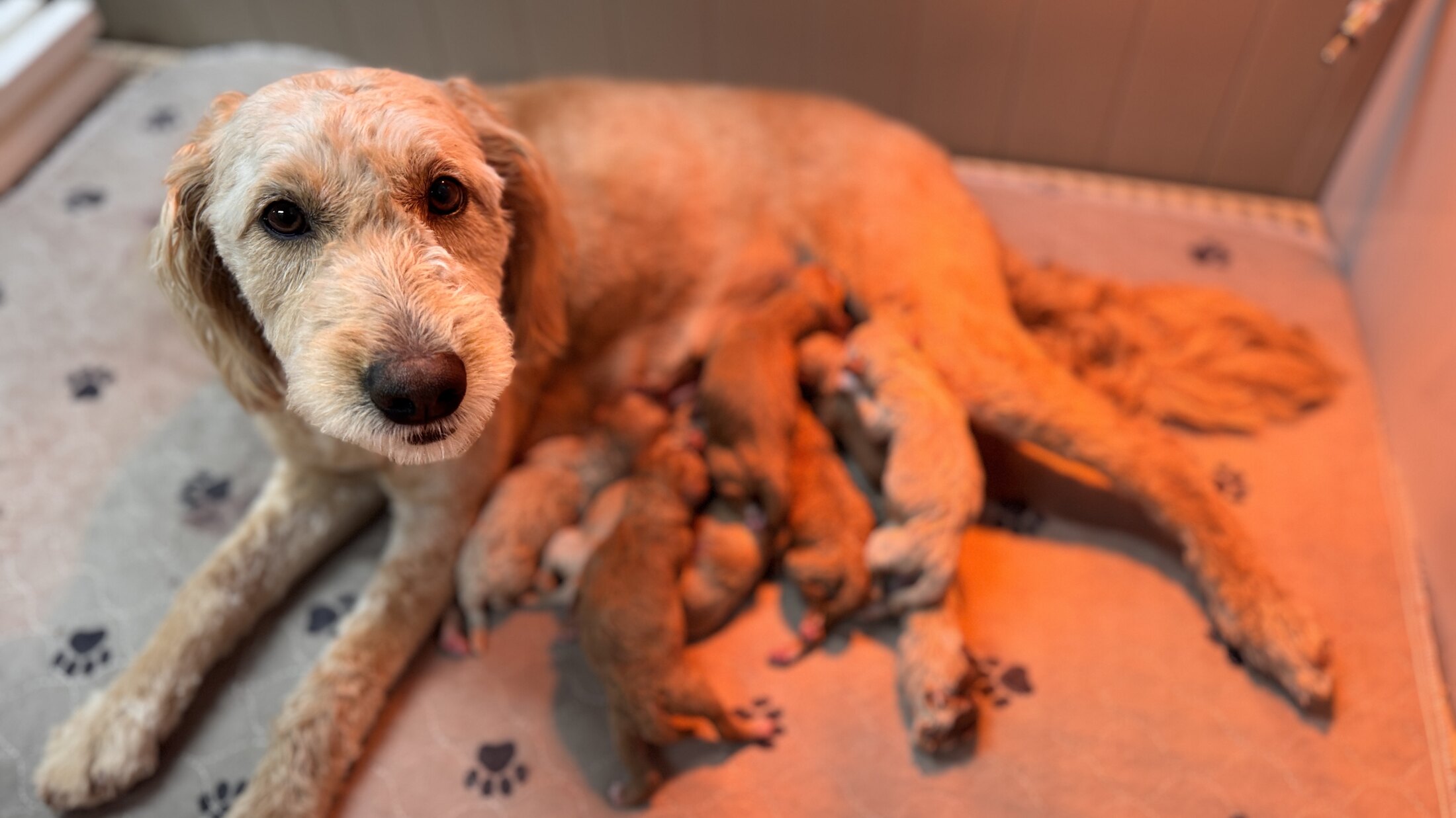 Our puppies are family raised and well socialized, helping them transition confidently into their new homes. Goldendoodles from this pairing are expected to be great with children, adaptable for family life, and eager to please.